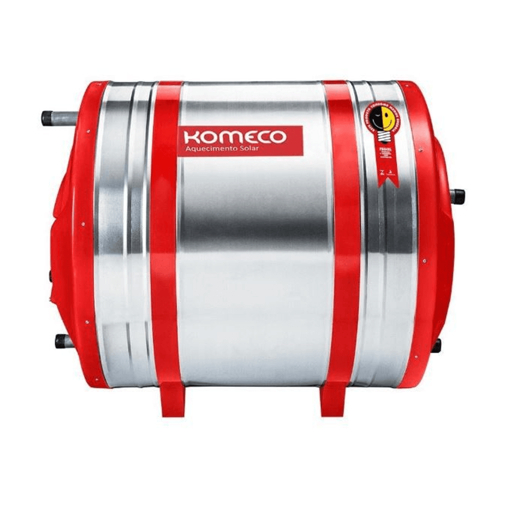 O que é um reservatório térmico? Ele é responsável por armazenar a água aquecida dos coletores, os Reservatórios Térmicos KOMECO são fabricados internamente com cilindro de aço INOX (AISI 304 ou AISI 316). Possuem espessa camada de isolamento térmico, feita em Poliuretano Expandido, que é atualmente o melhor material existente para isolamento, por ter alta densidade com Reservatório Padrão Reservatório Linha Especial (Nível) Figura 3 Figura 4 baixíssima transmissão de calor, mantendo a água quente por mais tempo. Capa externa em alumínio e calotas em polímero termo-moldado para proteção da camada de isolamento e acabamento externo do reservatório térmico.